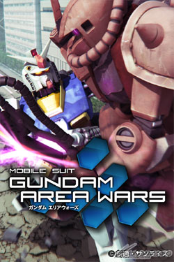 In Gundam Area Wars, a strategy game, players complete missions to shoot down enemy mobile suits and capture enemy bases, increasing their own squadron's might and influence. Using the camera and gyroscope, augmented reality will bring the front lines of mobile suit combat to your own city! (Augmented reality function only available on iPhone 4)