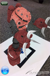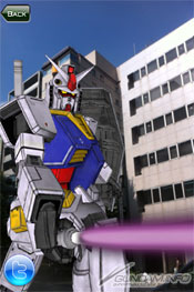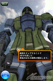 When playing on an iPhone 4, simply touch the AR button after drawing close to an enemy mobile suit on the map and look through the camera viewfinder to see it towering over you!
