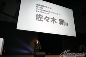 Next are Executive Producer Yasuo Miyakawa and Planning Producer Shin Sasaki from Sunrise, who comment on the beginnings of Gundam AGE and the anime production.