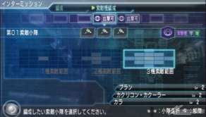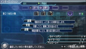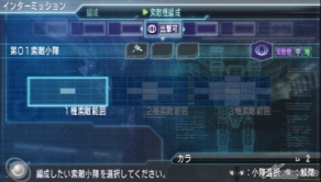 本作では、ステージ開始前のインターミッションで「小隊」、「索敵」、「支援」、「乗組員」の編成を行うことになる。