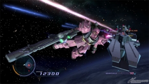 ▲デルタプラスが装備しているのはユニコーンガンダムの「ビーム・マグナム」。ギラ・ズールも「ビーム・ライフル」を手にしている。