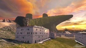 ▲マニューピチは、天への階段が遺跡として眠っていた古代から続く都市。今にも発進しそうなウィルゲムが控え、岩や建物の障害物があり高台と低地が斜面で繋がっている場所が戦いの舞台となる。
