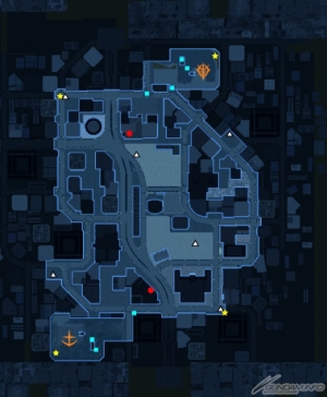 市街地マップは無人都市を舞台にしており、たくさんの建造物のために迷路状になっているのが特徴。分散して多ルートで拠点を狙ったり、中央部で総力戦に挑んだりなどの様々な戦闘が繰り広げられる。