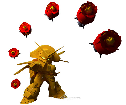 『機動武闘伝Gガンダム』に登場するモビルファイター。機体HPが85%以下になるとスキル2「スーパーモード」が発動し、機体性能がアップ。この時、武器2「バルカン砲」は「ローゼス・ビット」に、武器3「ローゼス・ビット」が「シュバリエ・サーベル(格闘コンボ)」に入れ替わる。