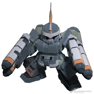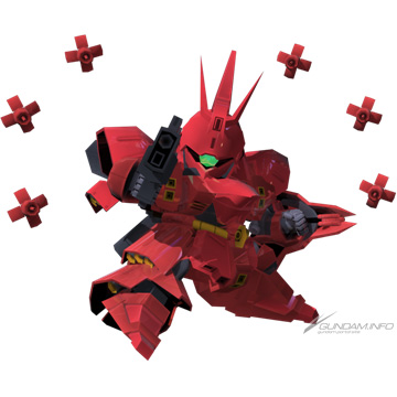 A mobile suit from Mobile Suit Gundam: Char's Counterattack. It normally prefers to attack at range with its Beam Shot Rifle and Funnels, but can swap gear to close in with Beam Tomahawk and Beam Saber Combo.