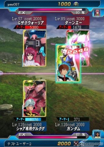 全国のプレイヤーから対戦相手を選択。バトルはユニットをタッチして操作する新感覚のバトルだ。「EXVS.FB」でおなじみの「EXバースト」を決めて勝利を掴め!