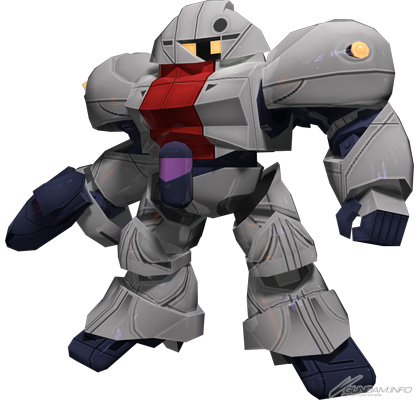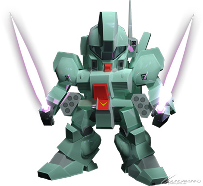 A mobile suit from Mobile Suit Gundam F91. It's made unique as a melee suit by its good long-ranged loadout. Its special attack is a full barrage, making it easy to attack distant enemies. However, its low HP and lack of a shield make it weak in messy fights, and better suited to stick-and-move tactics.