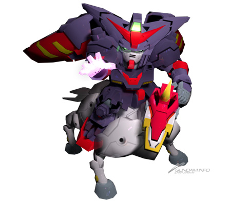 A mobile fighter from Mobile Fighter G Gundam. Its powerful melee Transporter (Thrust) forms the core of its strategy. In standard mode, its defense is high, excellent for skirmishing. Transformed, it has more bost gauge for higher mobility, but lower defense and is limited to only its Gigantic Magnum. Base your tactics around these two opposing modes.