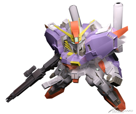 A mobile suit from Gundam Sentinel. Its Beam Cannon and Beam Smartgun both boast a long reach foor snipers' duels. When ALICE activates, enemy positions are displayed on radar and agility and defense are boosted, but be careful in fights: it only ticks on below 40%.