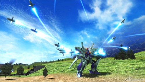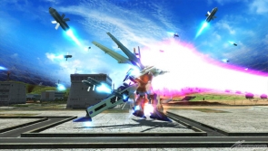 ▲ Activating the EX burst fires off both shoulder cannons for a long burst, as well as the back-mounted missile launcher.