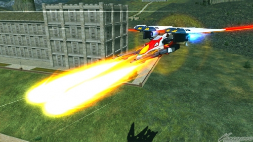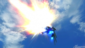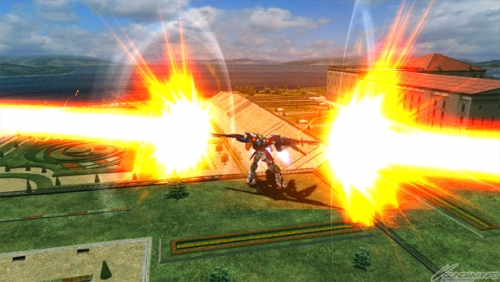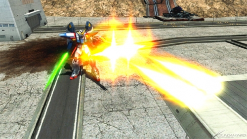 ▲ Sub-ranged is a spray from the machine cannons mounted in each shoulder. The combination of cover fire from the sub-weapon and a charged main make for incredible power while closing in.