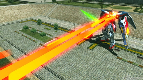 ▲ Its main weapon, the Twin Buster Rifle, fires dual beams.