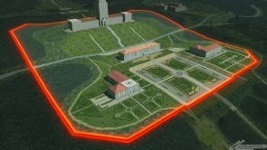 Gazing up at the sky over Sanc Kingdom. you can see not just the sun but The Shooting Star She Saw. The stage is divided into high ground with permanent and low ground destructable buildings, with a no man's land in between..