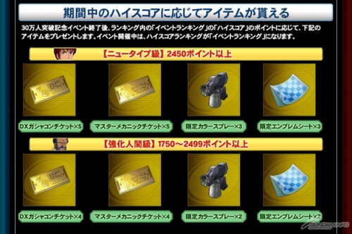 Mobile Suit Gundam Online from Namco Bandai Online celebrates a month of operation and over 300,000 users with the "300,000 Users Event" beginning 1/30.