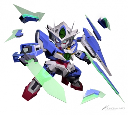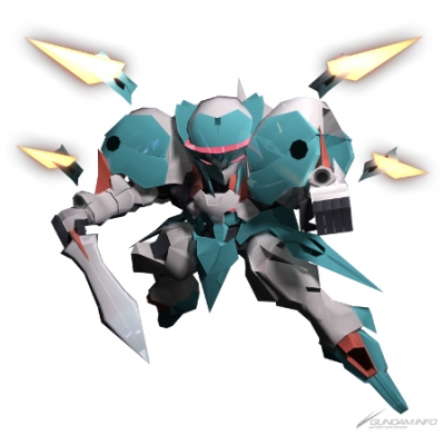 A mobile suit from Mobile Suit Gundam 00. Before transforming, its GN Sword Bits automatically attack the enemy. After transformation, it trades defense for speed and raw power.