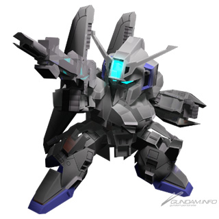 A mobile suit from Gundam Sentinel. Before transforming it attacks with bazooka and vulcans at long range, then attacks with its beam cannon at midrange after transformation.