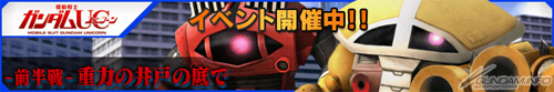 すでに『ガンダム』、『Ζガンダム』、そして前半・後半二部構成の『ガンダム00』イベントが開催され好評のうちに終了したが、 昨日2月28日からはいよいよ最新作episode 6の公開を目前に控え、 今最も熱い盛り上がりを見せる 『ガンダムUC』のイベントがスタート!