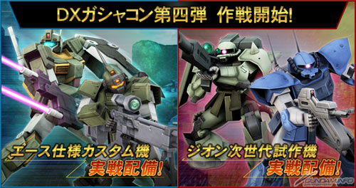 The DX Gashacon adds the new mobile suits GM Striker, Act Zaku, GM Sniper Custom, and MS-06F Zaku II (Sniper).