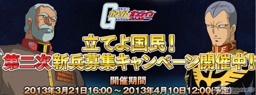 Mobile Suit Gundam Online's prize is a DX Gashacon ticket! Don't miss your chance! The promotion is available through April 9th.