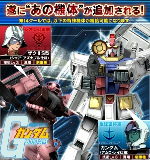 そして今回第14クールでは「特殊機体」の一つとして、地球連邦軍に「ガンダム(アムロ・レイ仕様)」が、ジオン公国軍に「ザクIIS型(シャア・アズナブル仕様)」がそれぞれ実装されることが明らかにされた。
