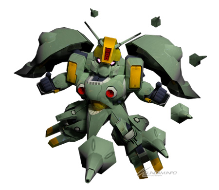 【武装(武装変更前)】 武器1:頭部3連メガ粒子砲 武器2:腕部メガ粒子砲 武器3:ファンネル スペシャルアタック:全弾発射型 【スキル】 スキル1:高性能OS スキル2:強化人間の運命 |