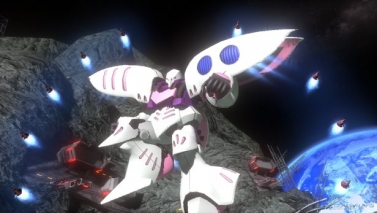 アクシズで開発されたNT専用MS。両肩のバインダーにバーニアが内蔵されており、両腕を肩に格納することで高速機動形態に移行できる。ゲームでもサイコミュを搭載し、「ファンネル」が使用可能!