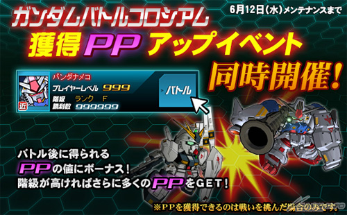 From June 5th through June 12th, the Gundam Battle Colosseum will be open, and you can earn bonus PP!