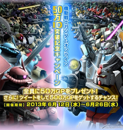 全員に50万GPプレゼント!「会員数50万ID突破記念キャンペーン」開催!Win「ガンダムオンライン」