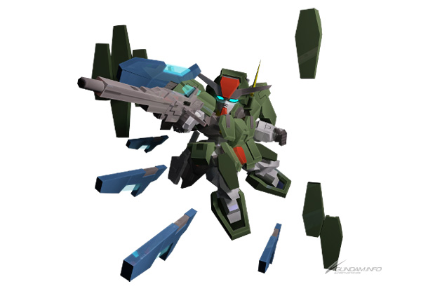 【武装(武装変更前)】 武器1:GNスナイパーライフルII 武器2:GNライフルビット(ライフルモード) 武器3:GNライフルビット(ビットモード) スペシャルアタック:全弾発射型 【スキル】 スキル1:防御力アップ スキル2:トランザム(ケルディム) |