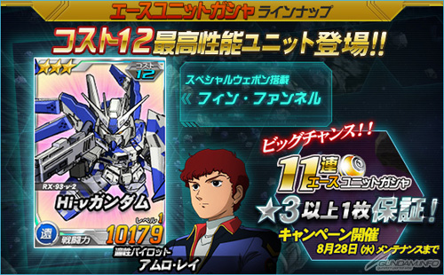 さらに、エースユニットガシャに「★3 Hi-νガンダム」を含む超強力なユニットが新たに追加されたほか、豪華アイテムが手に入る3つのキャンペーンも同時にスタートした。