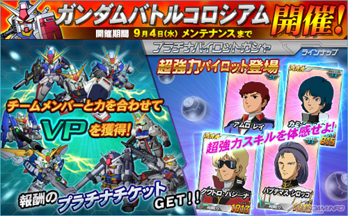 チームメンバーで協力して多くの「VP」を獲得し、超強力パイロットがラインナップされた「プラチナパイロットガシャ」にぜひともチャレンジしよう。