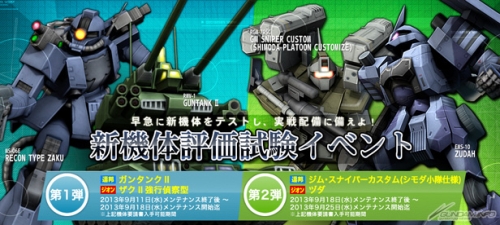 前回好評だった「新機体評価試験イベント」は、今回第1弾と第2弾の2週連続で実施され、『機動戦士ガンダム MS IGLOO』、『MSV』、『MSV-R』より1週ごとに2機体、計4機体が新たにレンタル機体として登場する。