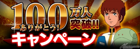 バンダイナムコゲームスよりApp Store、およびGoogle Playにて好評配信中のスマートフォン向けオンラインゲームアプリ「ガンダムエリアウォーズ」では、100万人を突破したことを記念するキャンペーンが開催中だ。