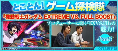 バンダイナムコゲームスの無料会員制Webマガジン型ファンサイト「Side-BN倶楽部」では、注目ゲーム情報をあらゆる角度から掘り下げる「とことん!ゲーム探検隊」コーナーにて、“PS3「機動戦士ガンダム EXTREME VS. FULL BOOST」の見どころに迫る!Part1”が本日10月3日(木)に公開された。