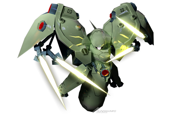 『機動戦士ガンダム0083』に登場するMA。武装変更前の武器3「ミサイル・ランチャー」はホーミング性能を持ち、射撃戦でプレッシャーを与えていくことができる。また、武装変更後は、離れた相手を武器3「有線式クロー・アーム」で引き寄せて、武器1「ビーム・サーベル(メインアーム)」で追撃する戦法が強力だ。