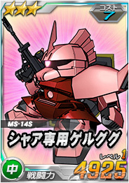 「ジオング」を倒した際に引くことができるチャンスガシャには、「シャア専用ゲルググ」を獲得できるチャンスがあるほか、エースユニットガシャには「ジオング」に対し6倍の攻撃力を発揮する「G-3ガンダム」が追加される。