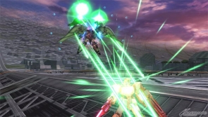 ▲ EX Burst calls down the Victory Gundam Hexa for a coordinated beam strike.
