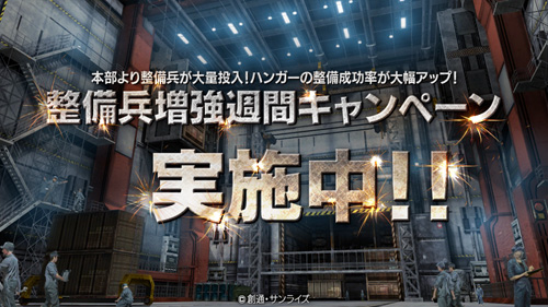 期間中、本部より整備兵が大量投入され、全てのスロット強化ハンガーの整備成功率が最大30%増加する。