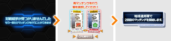 新たに導入された「再マッチングシステム」では、対戦相手が見つからなかった場合、1回のみ再度出撃軍選択を行った後にマッチングが行われる。