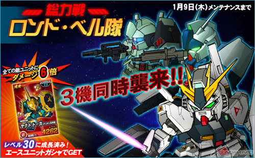 総力戦には本日から2014年1月9日(木)までの期間限定で「ロンド・ベル隊」が登場し、期間中に任務を実行すると、まれにエンカウントすることがある。