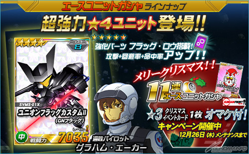 さらに、エースユニットガシャラインナップに「★4 ユニオンフラッグカスタムII(GNフラッグ)」が追加されたほか、各種キャンペーン・イベントもスタートした。