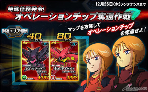 さらに、本日から12月26日(木)までは、期間限定のマップに登場する強力な敵を倒してオペレーションチップを獲得することを目標とした特殊任務「オペレーションチップ奪還作戦」も実施中だ。