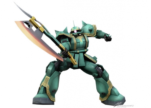 ドズル・ザビ中将用にカスタマイズされたザクIIF型。スパイクが両方の肩部に装備され、金色の装飾が行われています。特別製の「専用大型ヒート・ホーク」を装備しており「専用大型ヒート・ホークDII式」ではダッシュ格闘に追加入力を行うことで威力2倍攻撃の連撃を行うことが可能!