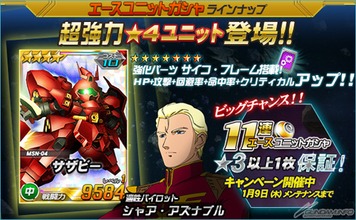 エースユニットガシャに強化パーツ搭載の「★4 サザビー」が登場!