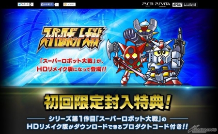 * Digital PS3 and PS Vita versions of Super Robot Wars Z III: Jigoku-hen purchased between April 10th and April 23rd, 2014 will include the HD remake of Super Robot Wars. * PS3 and PS Vita versions of the remake are planned for sale separately at a later date. Release date: April 24th / Price: ¥1,204