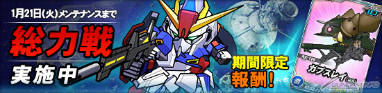 今回の総力戦では「Ζガンダム」が登場し、本日1月7日(火)から1月21日(火)までの期間中に任務を実行すると、まれにエンカウントすることがある。