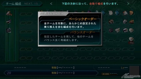 ▲手軽にチームを編成するためのシステムとして、原作での組み合わせを重視した編成「ベーシックオーダー」と、プレイ状況から算出したバランス重視の編成「バランスオーダー」の2種類の自動編成が用意されている。