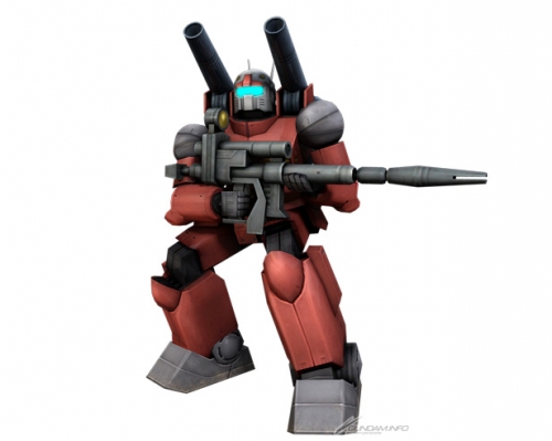 「V作戦」において活躍する中距離支援機体。両肩に装備した巨大なキャノン砲は高い火力を誇る。その他、頭部バルカン砲やビーム・ライフルを装備している。