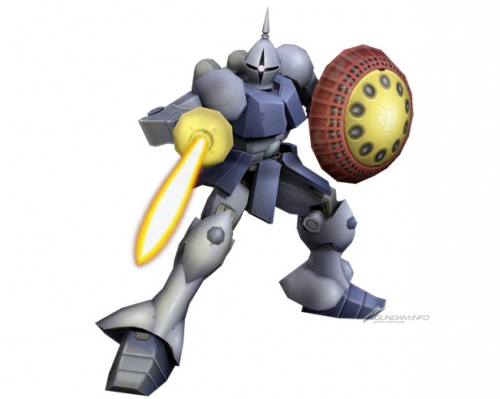 ゲルググともにジオン公国軍の次期主力量産機の座を争った対白兵戦用機体。ニードル・ミサイルやハイド・ボンブといった特殊な武装内蔵シールドを所持している。
