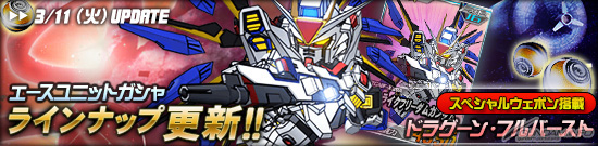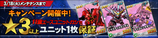 さらに、エースユニットガシャに「★3 ストライクフリーダムガンダム」が追加されたほか、「11連ガシャ★3ユニット1枚保証キャンペーン」が開始されるなど多くのアップデートも実施された。